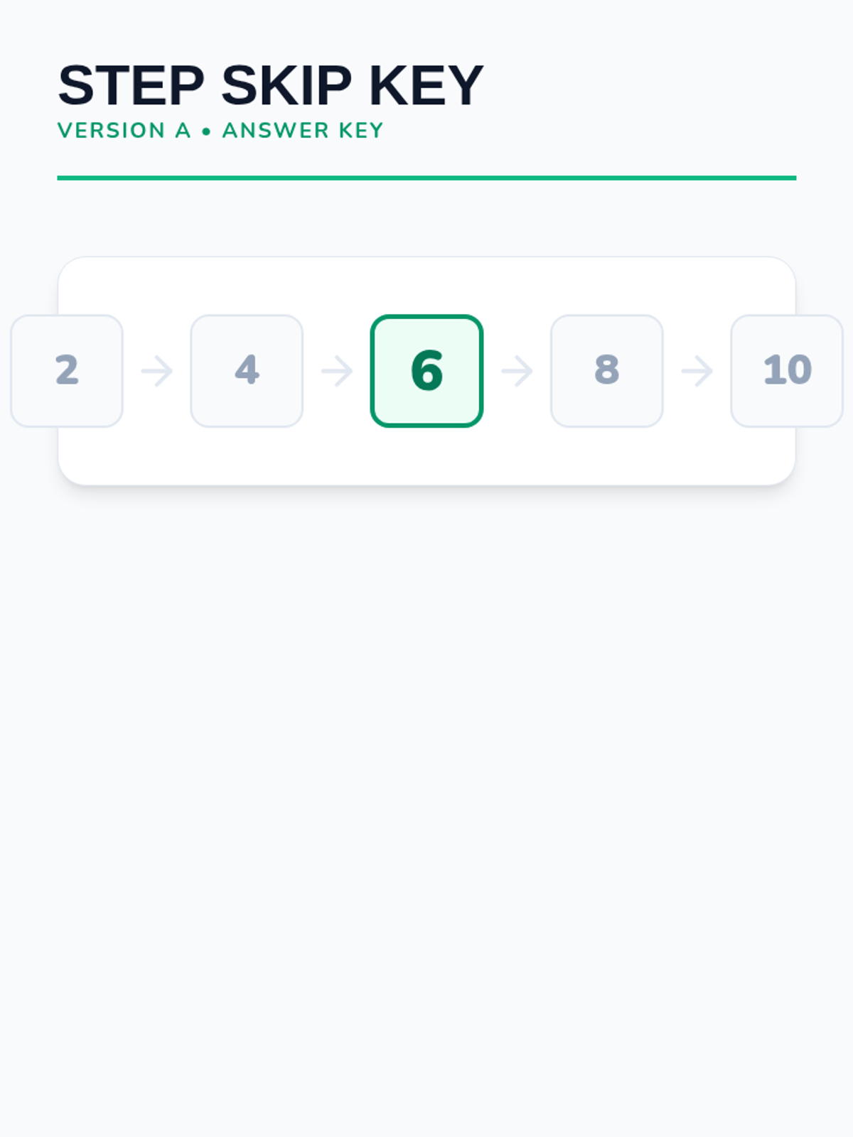 Answer keys for the set of four skip counting exit tickets. Versions cover sequences within 2-20. Assessment is designed for zero visual cues.
