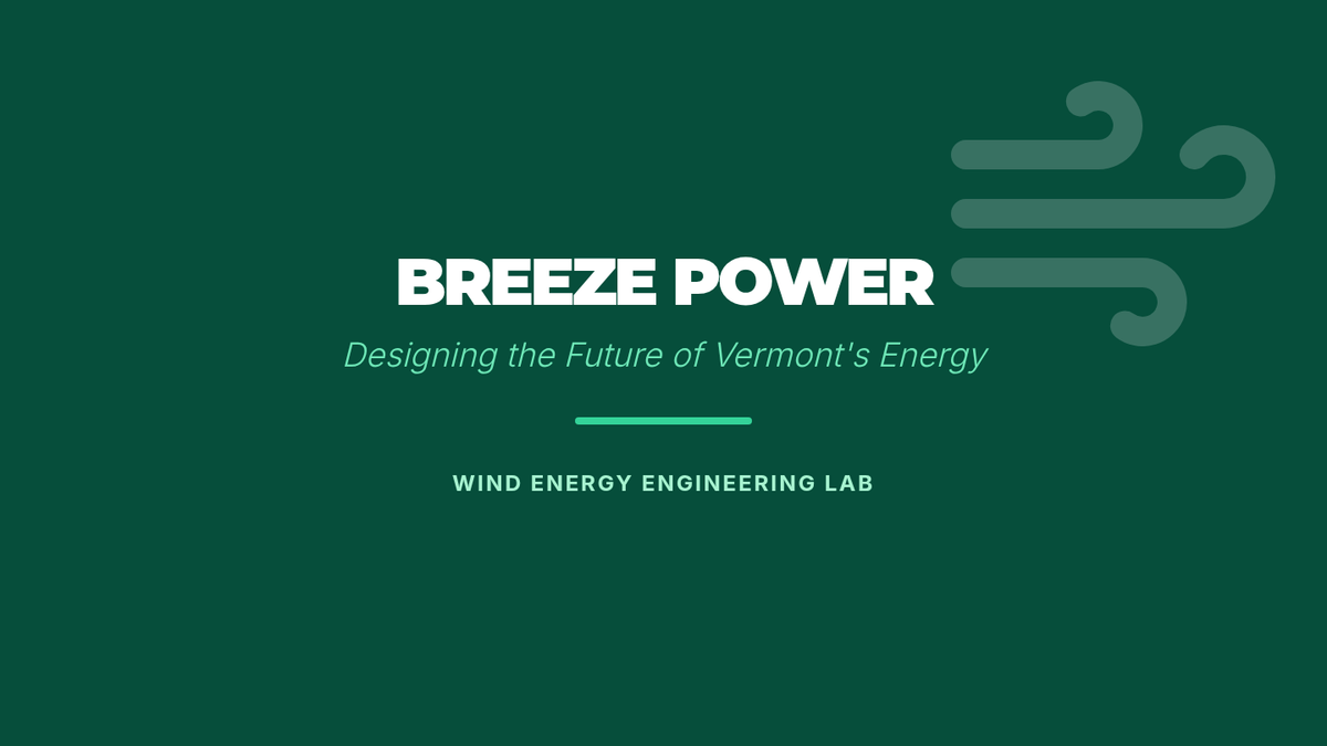 Engaging presentation slides introducing wind energy concepts, Vermont's renewable initiatives, and the engineering challenge.