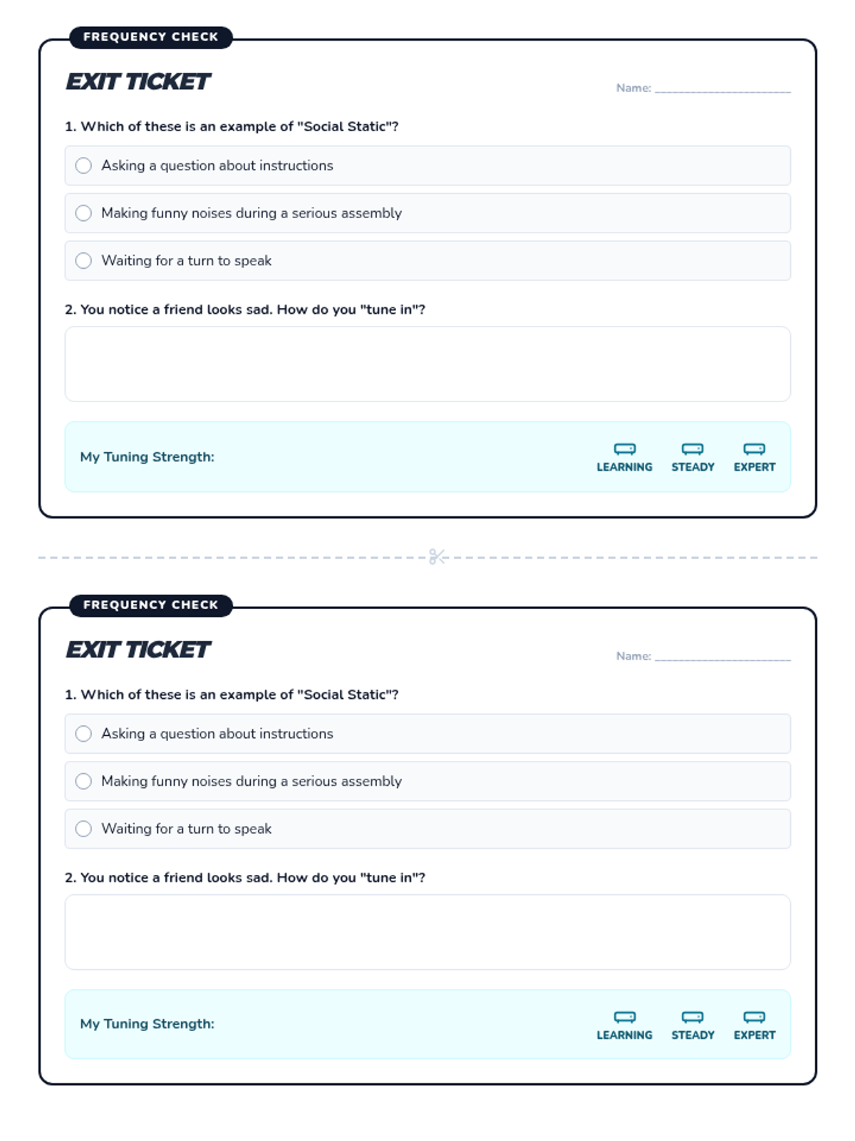 A double-up exit ticket to quickly assess student understanding of social static and self-regulation.