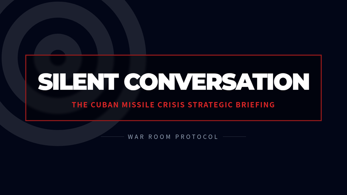 A 16:9 slide deck tailored for a silent discussion activity. It clearly explains the 'Silent Conversation' technique, showing students how to engage through writing, arrows, and peer responses to simulate the high-stakes atmosphere of the Kennedy administration's EXCOMM meetings.