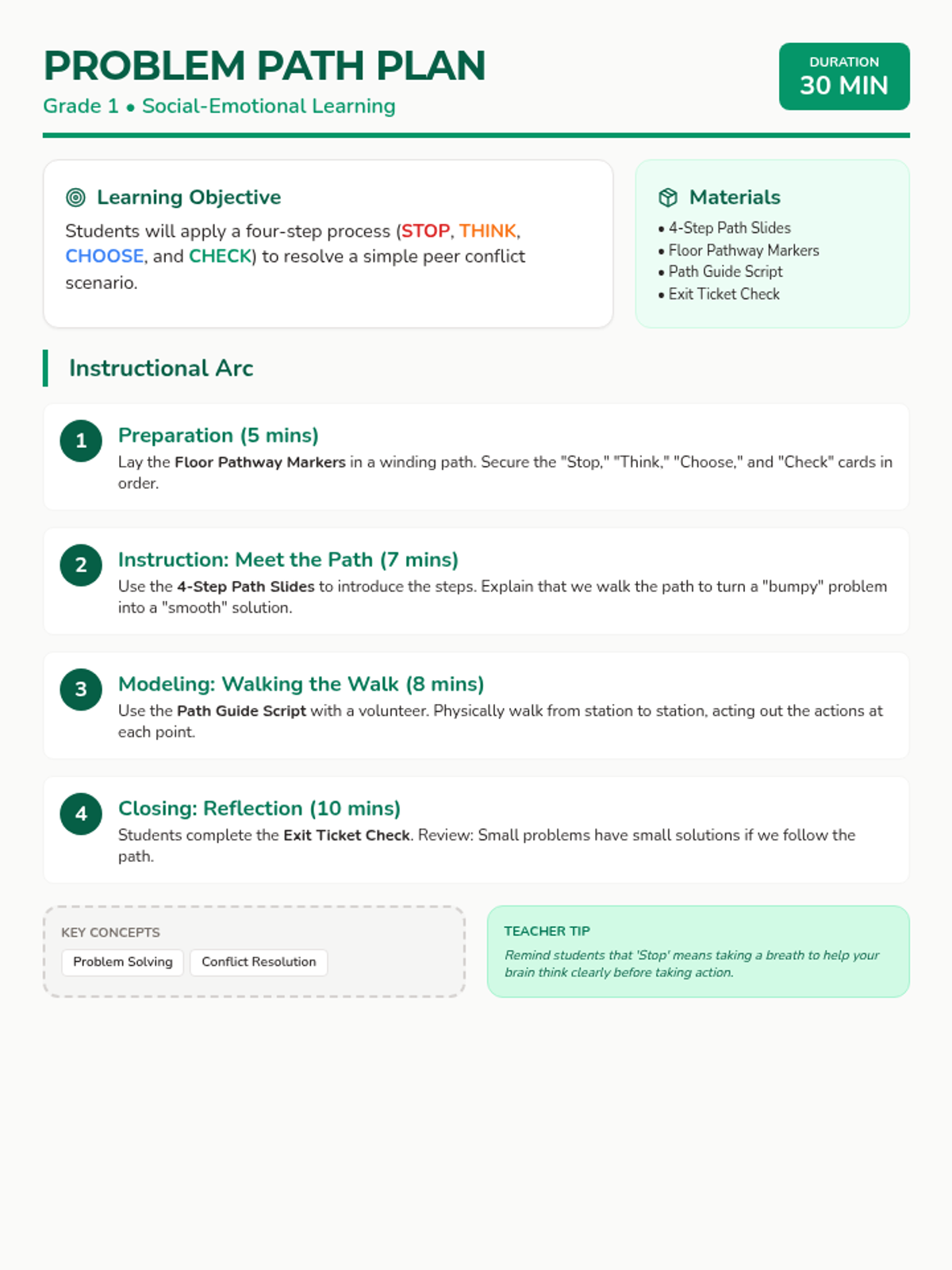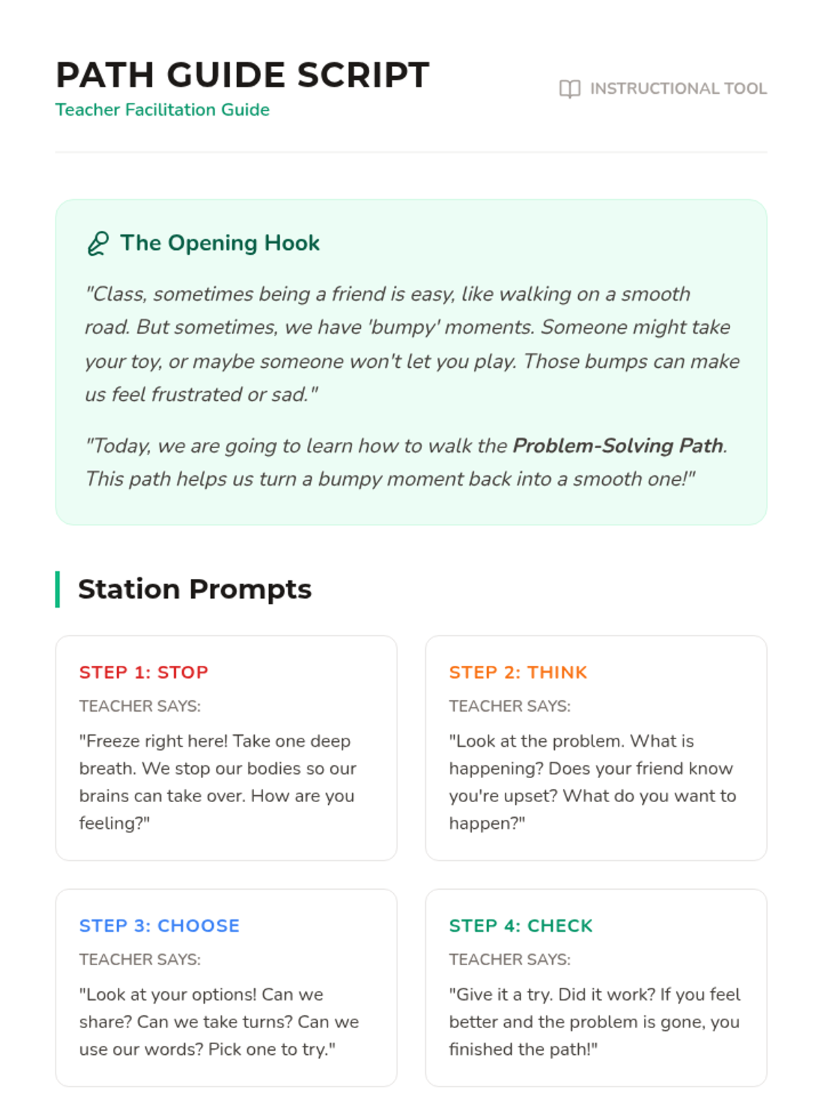 A structured dialogue guide for teachers to lead a Tier 3 individual discussion, featuring key talking points, demonstration prompts, and student-facing questions.