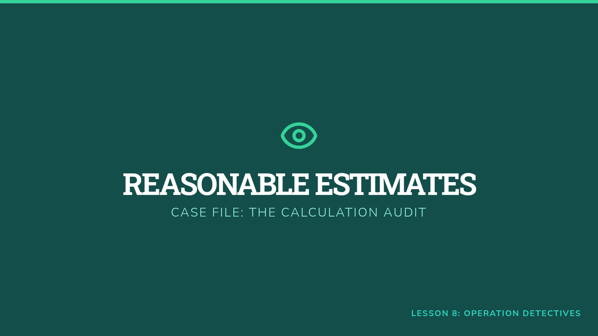 Slide deck for Lesson 8, illustrating how to use estimation as an "audit" tool to check for mathematical errors in multi-step problems.