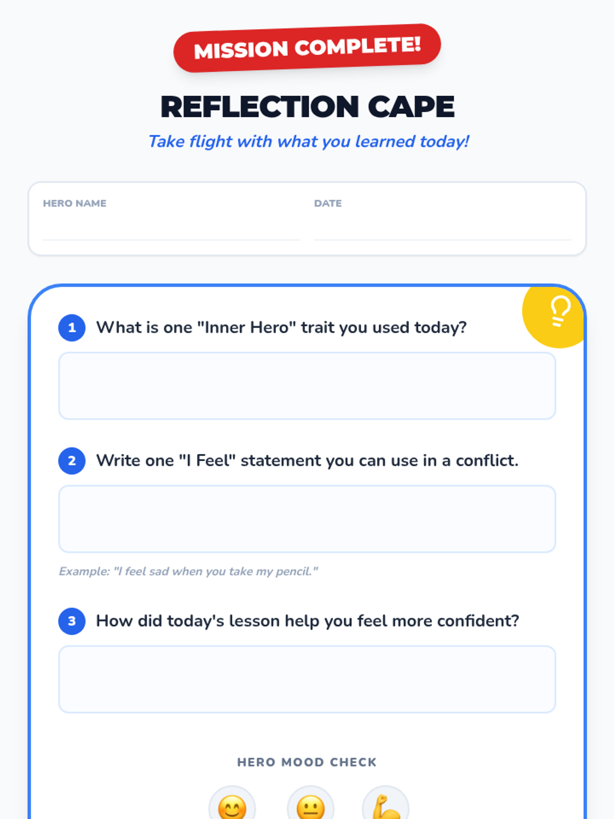 A reflection-based exit ticket designed to assess student understanding of self-esteem traits and conflict resolution 'I feel' statements after the lesson.