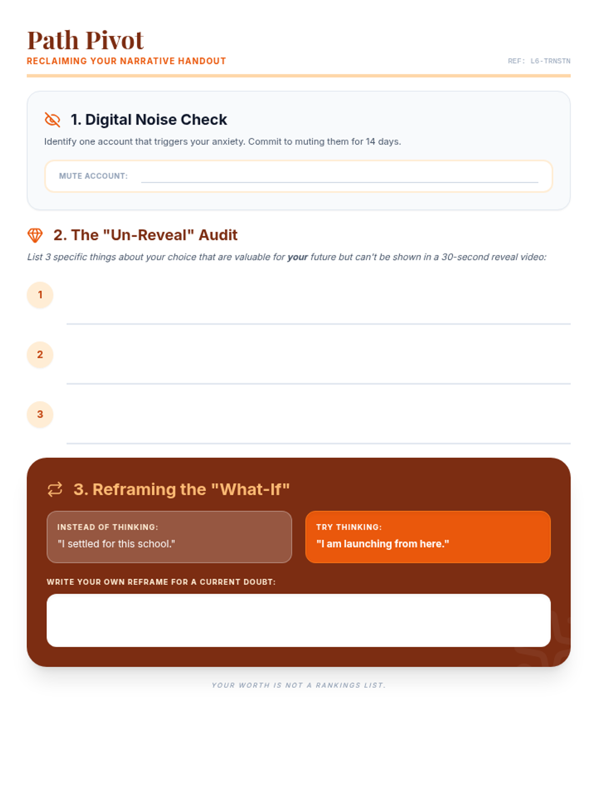 A narrative-shifting worksheet for seniors to combat the "comparison trap." Updated with better alignment, border-based inputs, and fixed footer position to fit on one page.