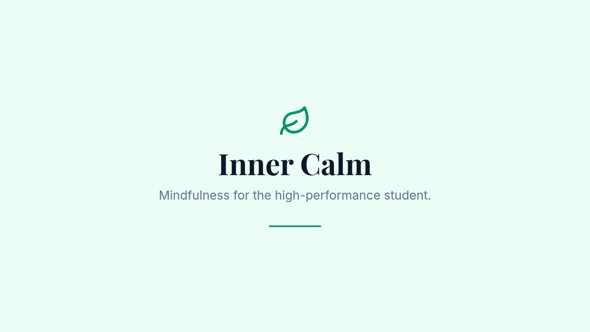 A 4-slide presentation teaching the 5-4-3-2-1 grounding technique as a practical mindfulness tool for high-stress students.