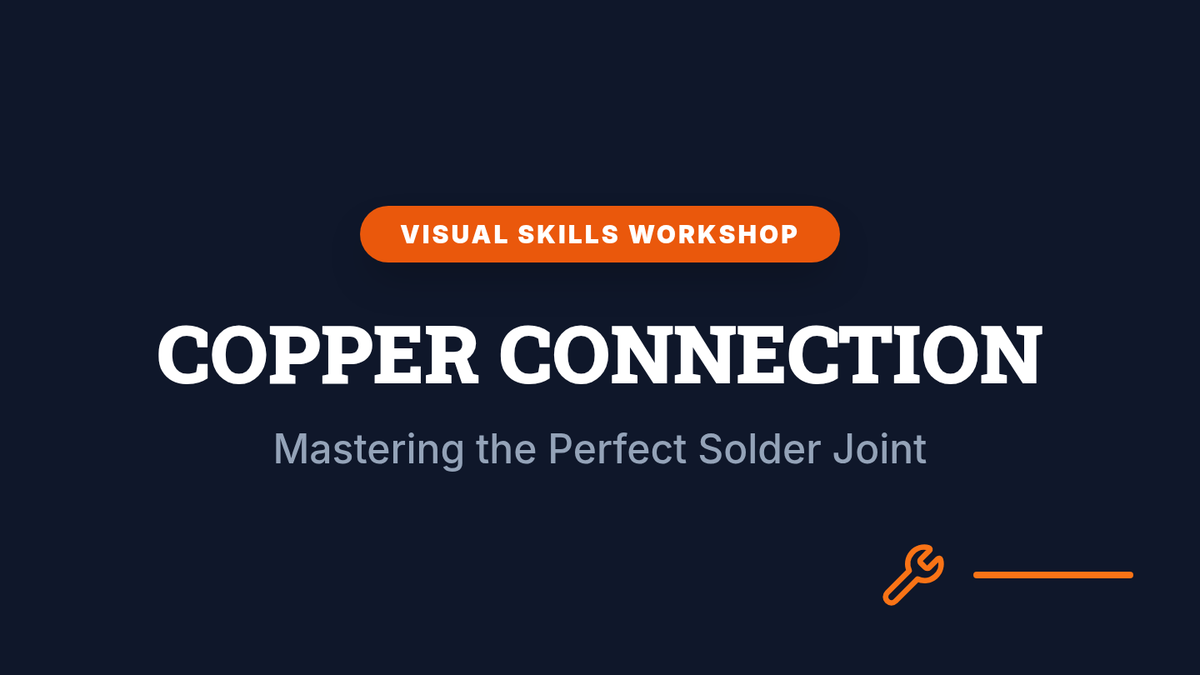 A visual slide deck teaching the fundamentals of copper soldering. It uses high-contrast visuals, simplified steps, and safety-first messaging tailored for remedial and visual learners.