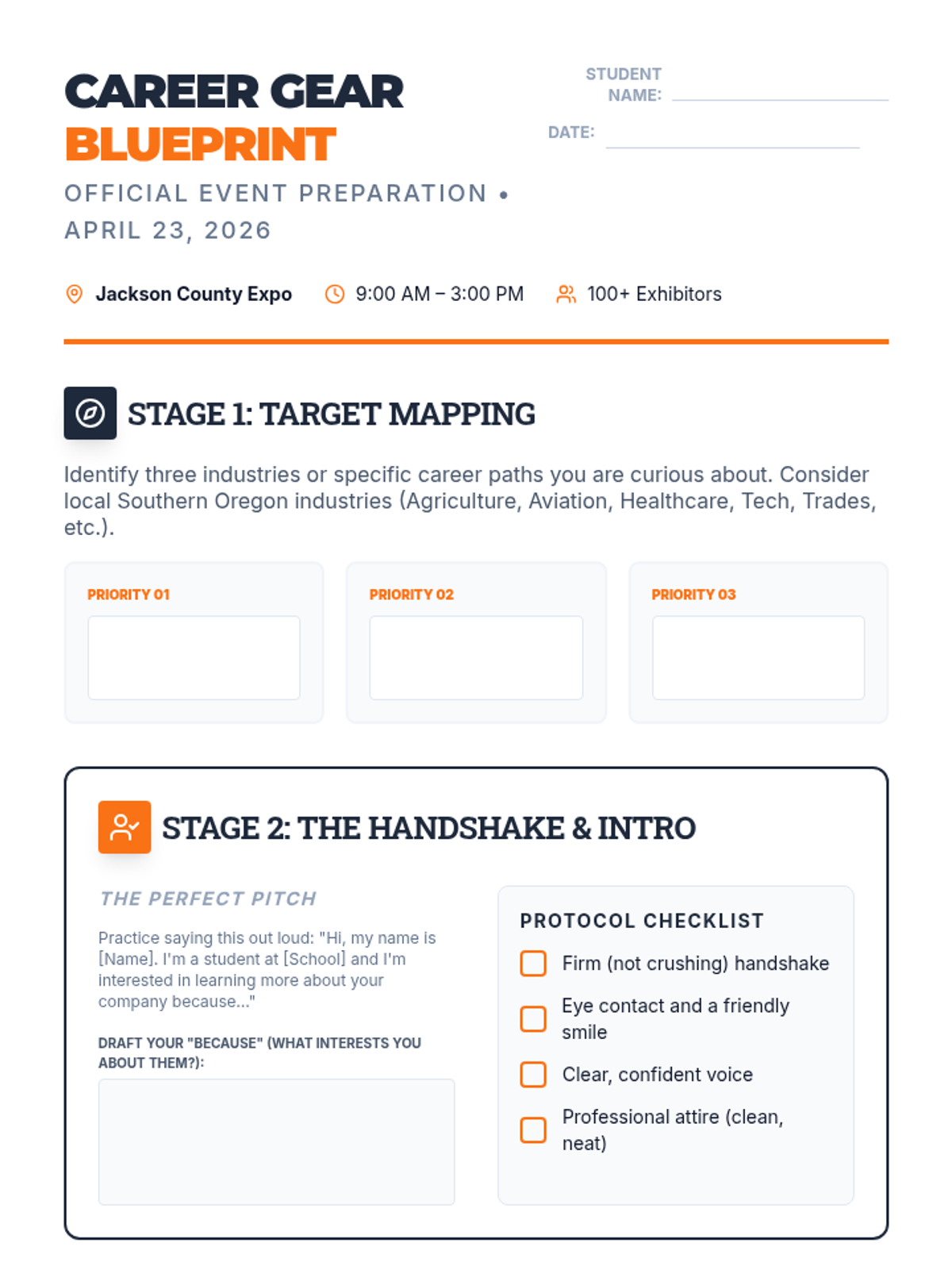 A high-impact visual presentation to introduce high school students to the Careers in Gear 2026 event. Covers event logistics, professional etiquette, networking strategies, and the mandatory photo release form.