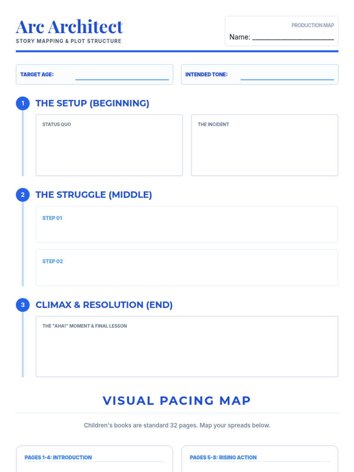 Final revision of the Arc Architect worksheet with aligned timeline markers, higher-contrast labels for photocopiers, and maximized work space for high school students.