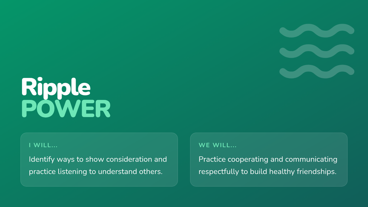 A high-impact visual slide presentation to guide the whole-group lesson on consideration and the ripple effect. Increased title size on first slide.