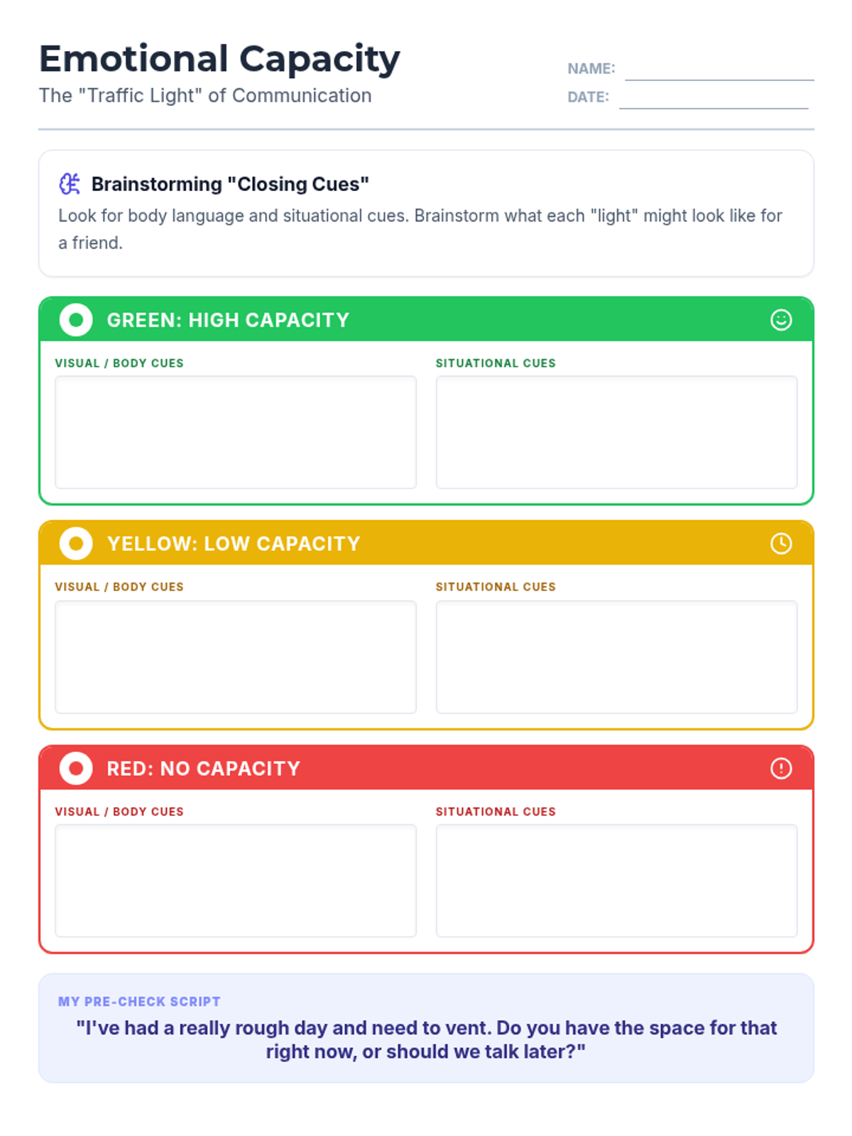 A detailed, professional one-page guide for guidance counselors and school staff. It features an expanded "Developing Discrepancy" section focusing on identifying the student's true identity before addressing risky behaviors, along with advanced MI scripts.