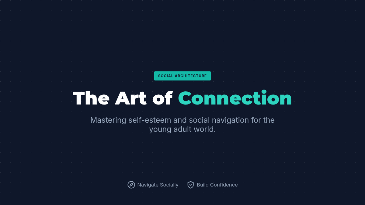 A slide deck for 19-year-olds on building social self-esteem. Covers psychological concepts like the spotlight effect, cognitive reframing, and practical steps for approaching new people in college and event settings.