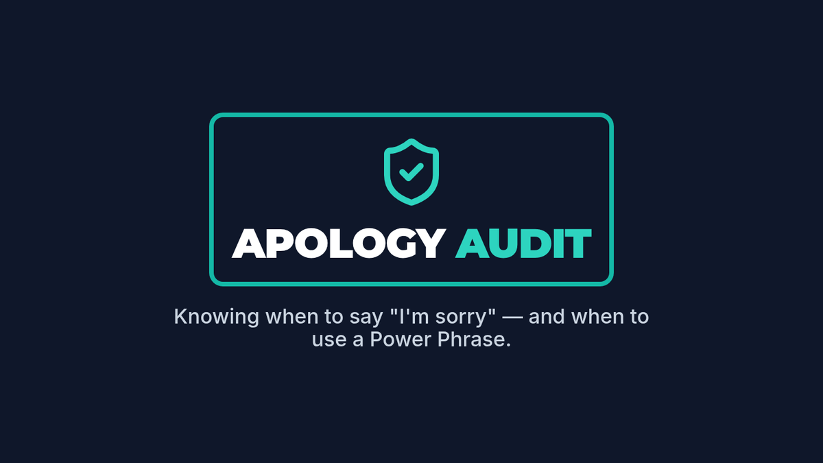 A visually structured slide deck that explains the logic behind apologies, featuring the "Apology Audit" flowchart and "Thank You" power moves for 9th-grade students.