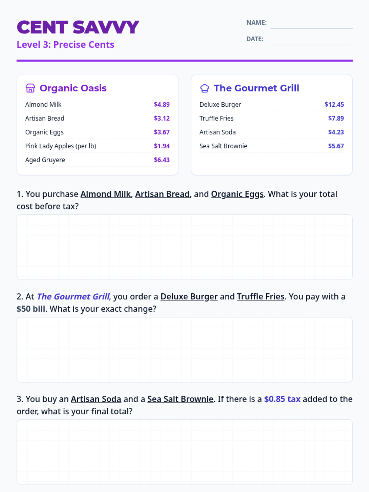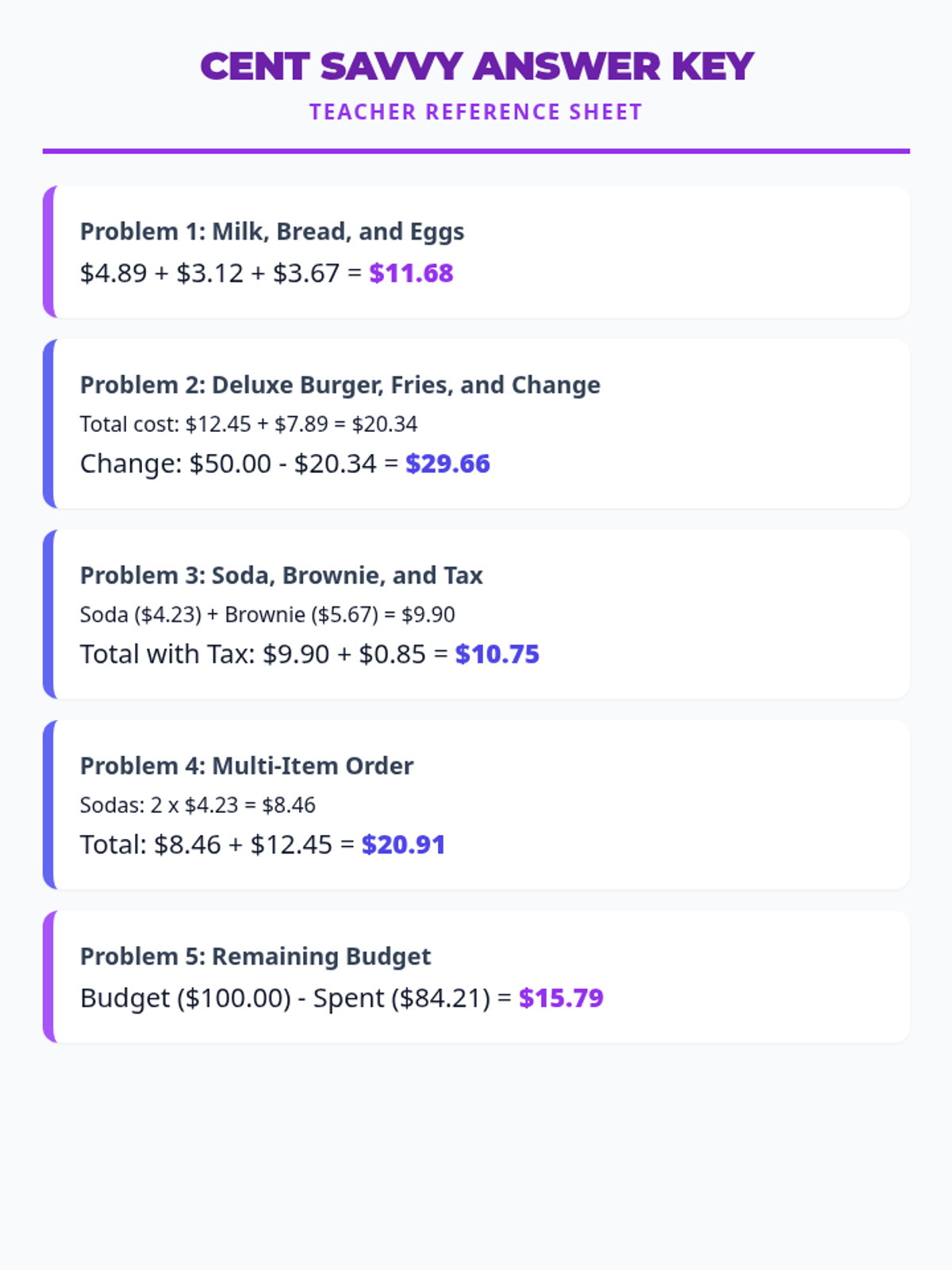 Answer key for the Level 3 Cent Savvy Handout. Revised to fix page breaks and optimize layout.