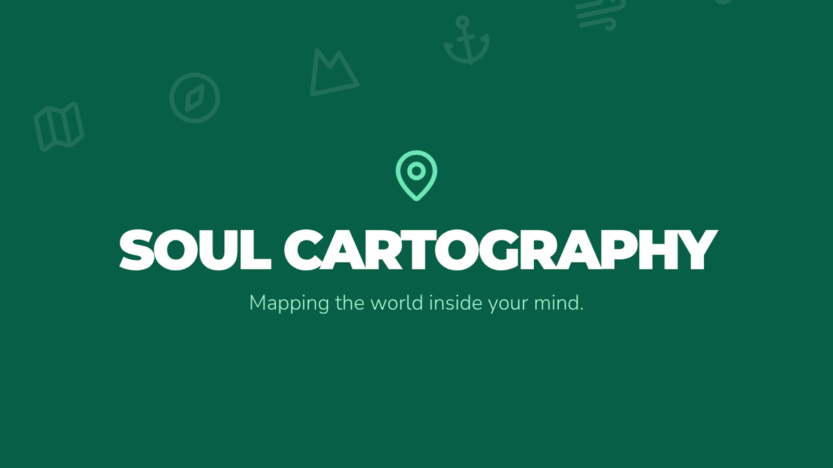 Visual presentation for the 'Soul Cartography' mentoring session. It introduces the concept of emotional mapping through geographical metaphors like mountains, woods, and safe havens to engage students in self-reflection.