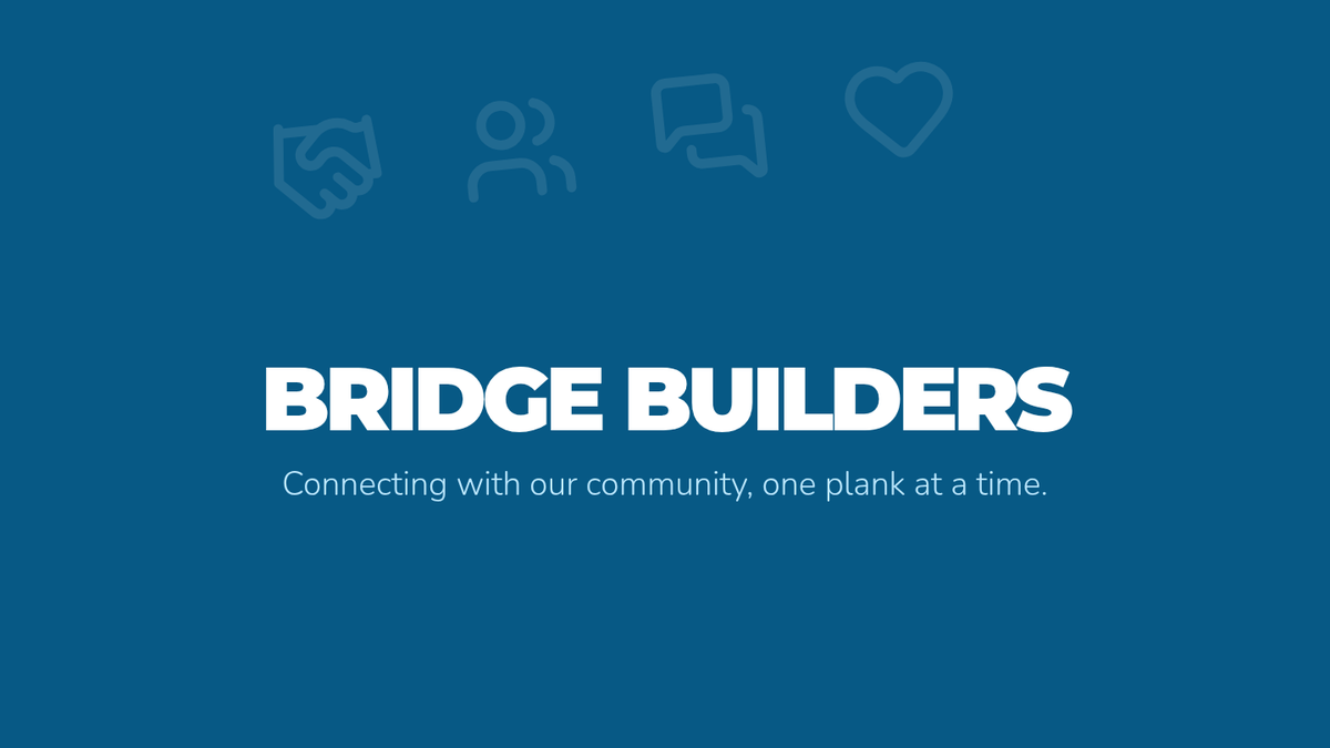 Instructional slides for the 'Bridge Builders' mentoring session. It uses the metaphor of bridges and walls to teach students about healthy communication, empathy, and how to repair relationships through 'planks' of dialogue.
