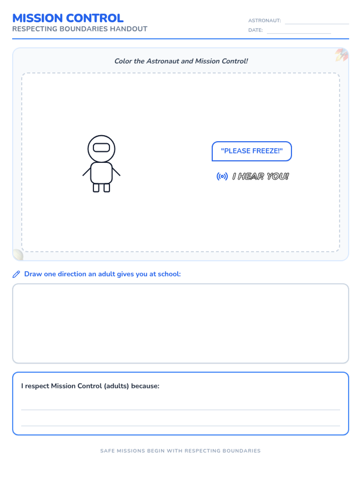 A revised student handout for the Mission Control lesson. Now fits perfectly on a single page with a higher-quality coloring illustration, darker text for readability, and improved opacity for decorative elements.