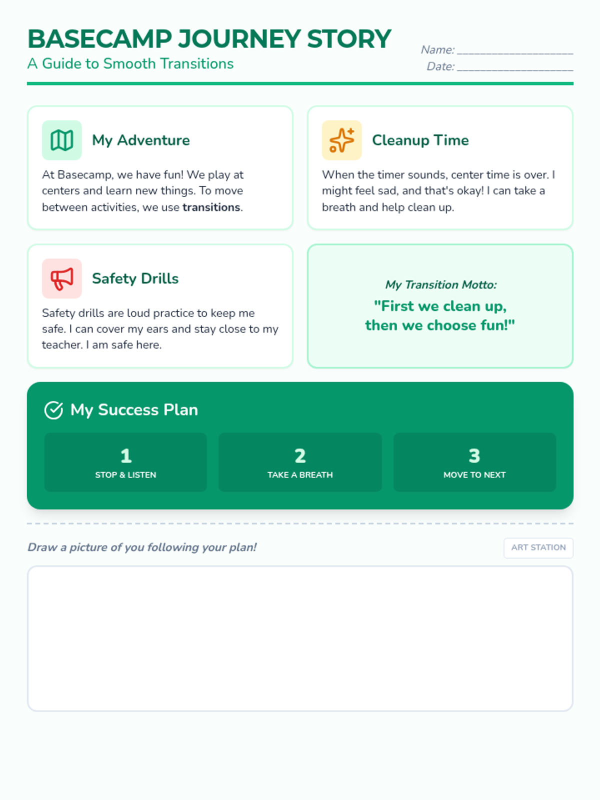 A reflective drawing and writing worksheet for primary students to personalize their commitment to respectful behavior in the classroom.