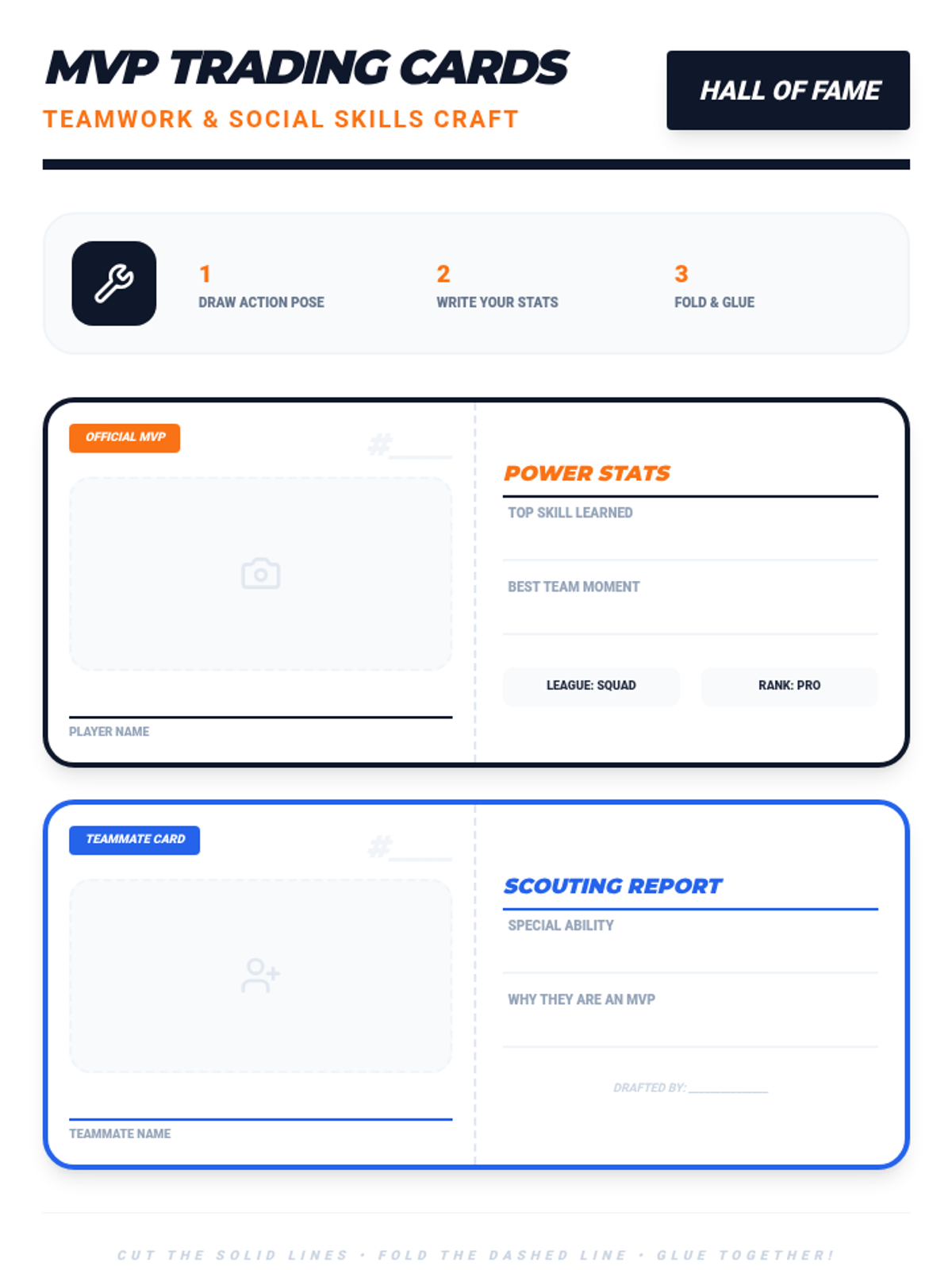A trading card craft activity where students create 'MVP' cards for themselves and their teammates, highlighting their growth in social skills and teamwork.