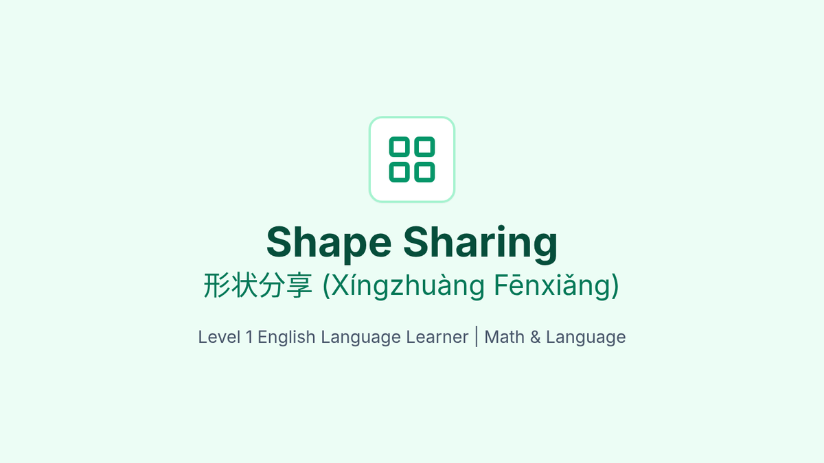 A bilingual math worksheet for sharing brownies among different numbers of people. Designed for Level 1 ELL students with Simplified Chinese support. Includes partitioned shapes and practical brownie sharing scenarios on two pages.