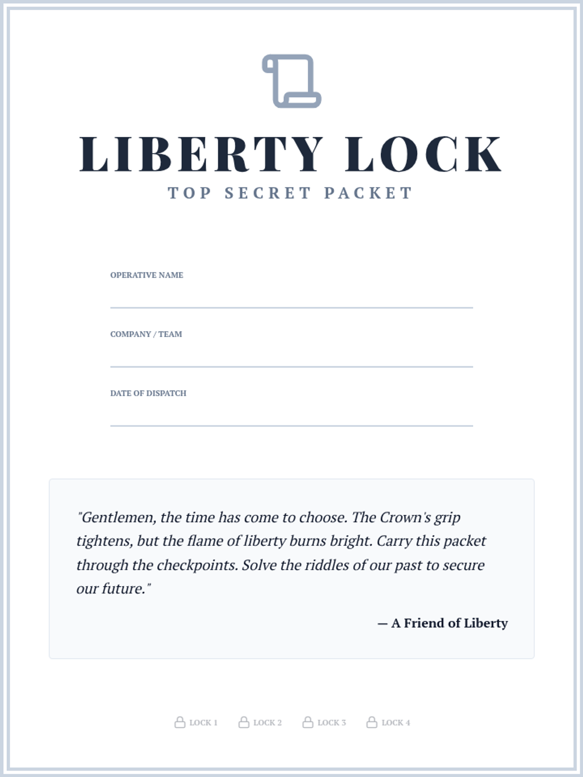 A visual guide for the escape room, providing narrative context, historical background on the four 'locks', and instructions for students. Updated with correct historical coordinates.