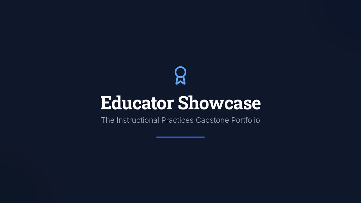 An introductory presentation for the Educator Showcase portfolio project, detailing the purpose, unit-based organization, artifact curation, and design standards for students.