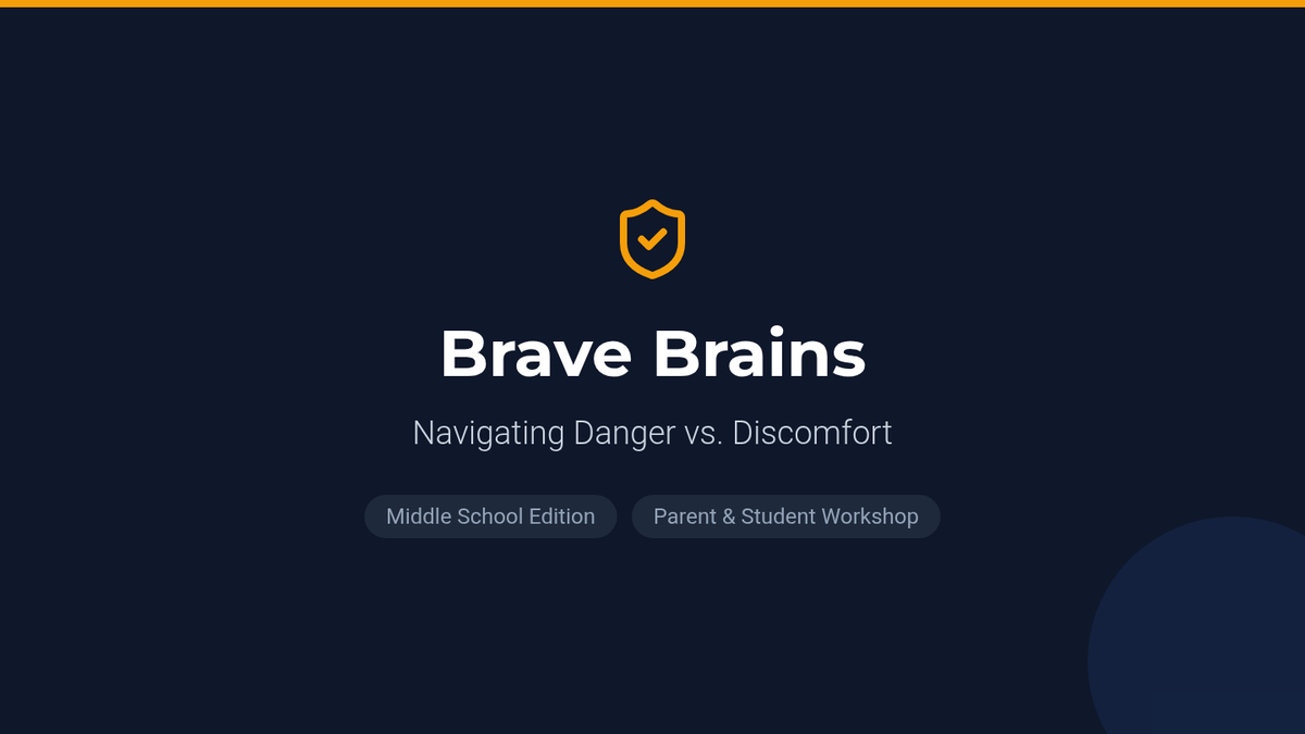 A 10-slide presentation designed for middle school students and parents to help distinguish between real danger and the discomfort of anxiety. Includes scenarios on social media, public speaking, and academic stress with practical coping tools.
