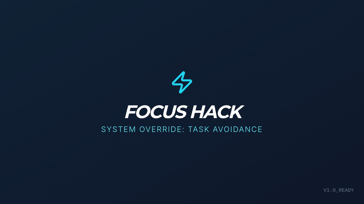 A highly visual slide deck for 9th-grade students with low literacy skills, explaining task avoidance through a 'System Error' theme. Uses large icons, minimal text, and simple 'Focus Hacks' to make self-regulation concepts accessible. Revised for better contrast and layout balance.