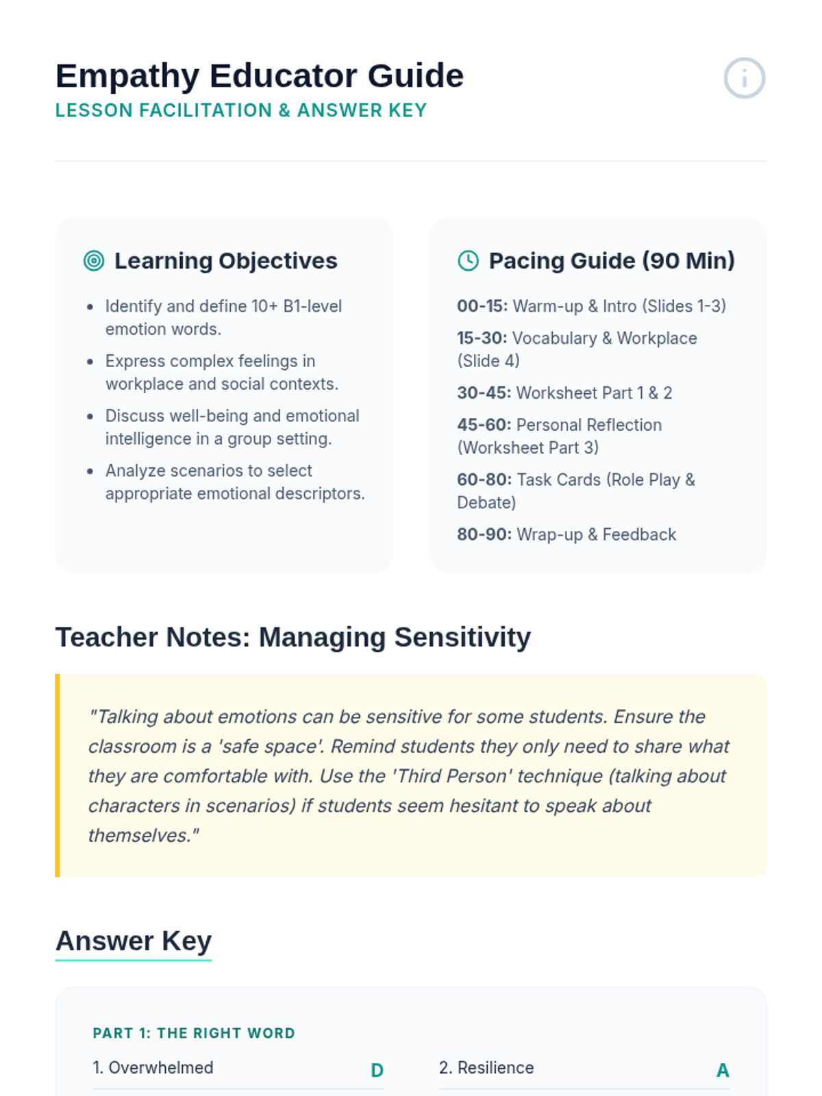 An answer key for the "Effective Listening Skills Assessment" providing correct answers and model responses for open-ended questions.