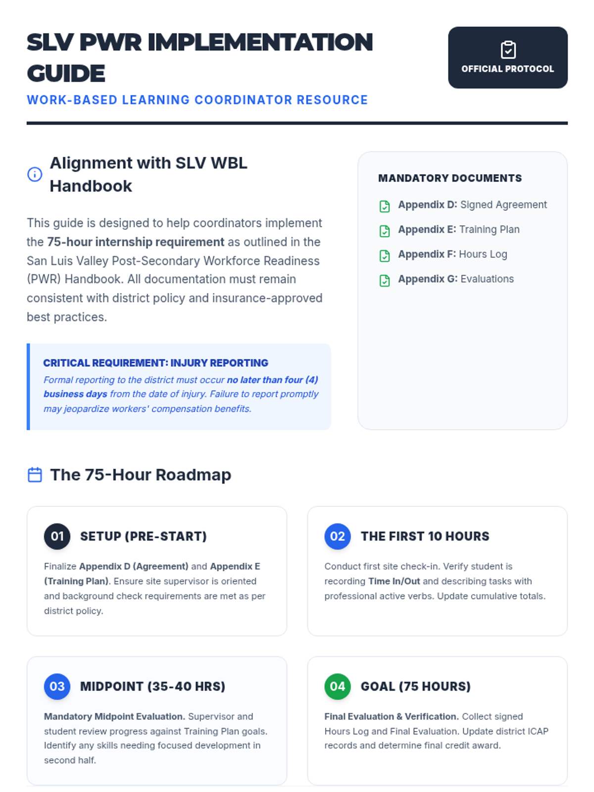 A detailed guide for teachers and coordinators on how to implement the internship hours log, featuring milestone tracking strategies, coaching tips for students, and a final verification checklist.
