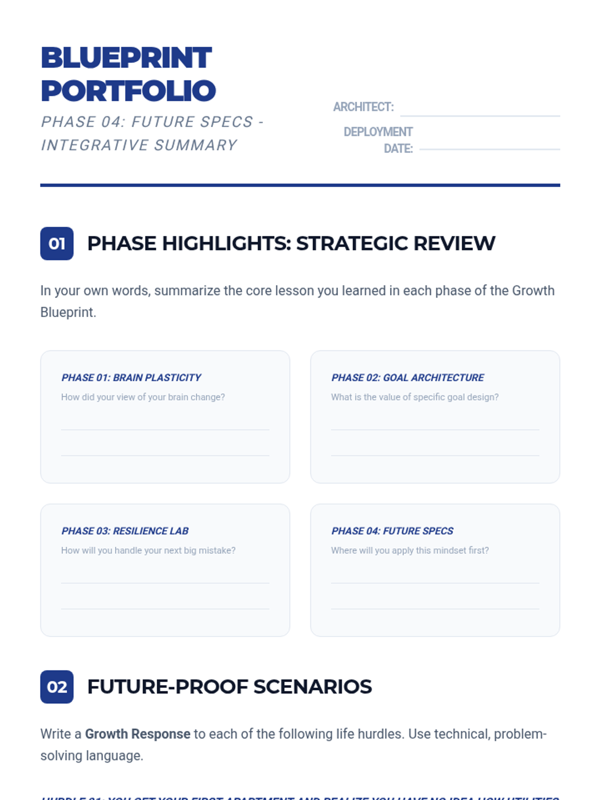 A final summative worksheet for students to reflect on all phases of the Growth Blueprint and plan for long-term mindset maintenance.