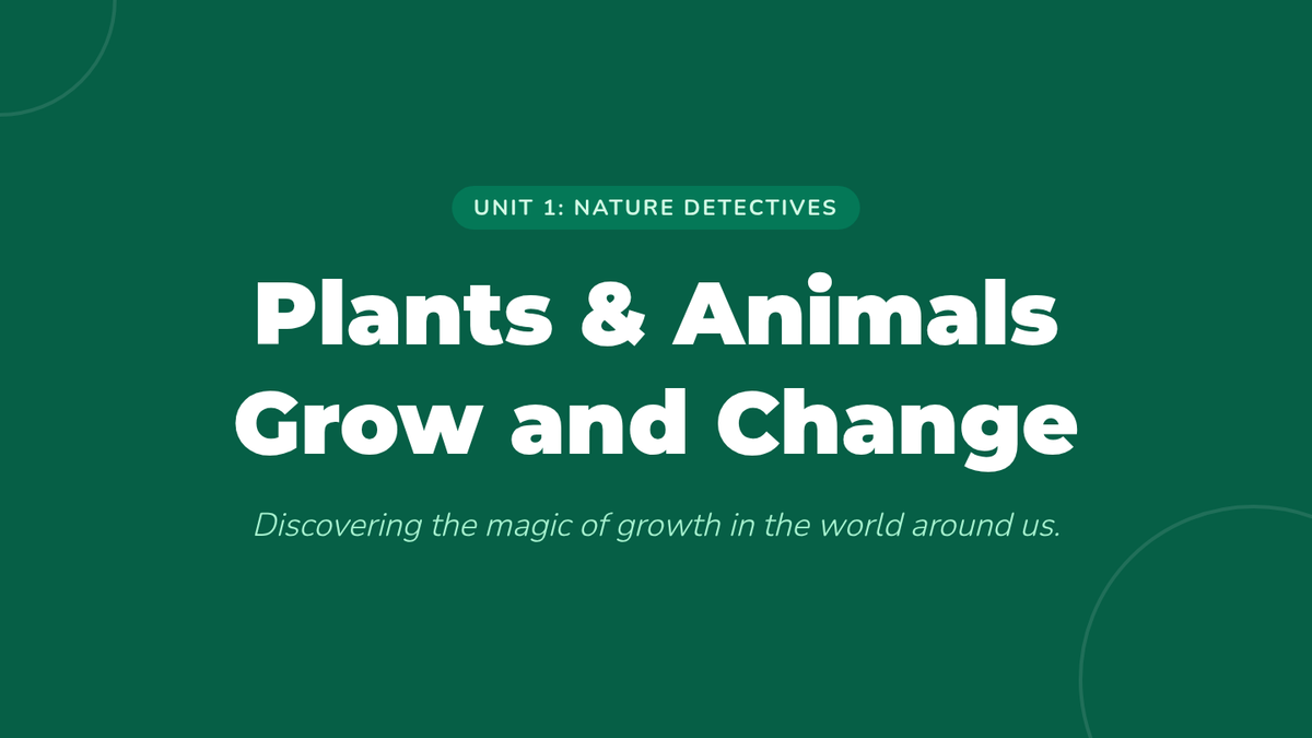 A presentation for the introductory lesson on growth and change. Revised to include the second video viewing, improved layout for smaller screens, and polished instructional prompts.