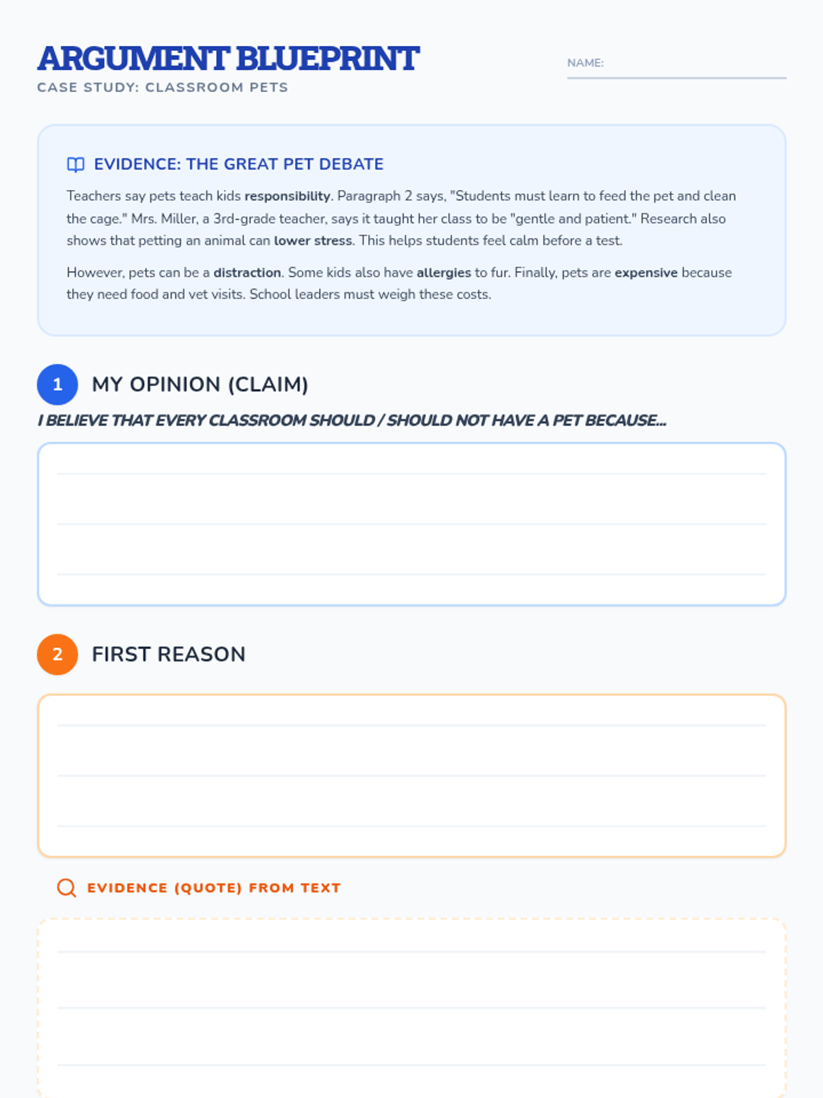 A structured graphic organizer for students to map out a 4-part story sequence with space for drawings and narrative writing.