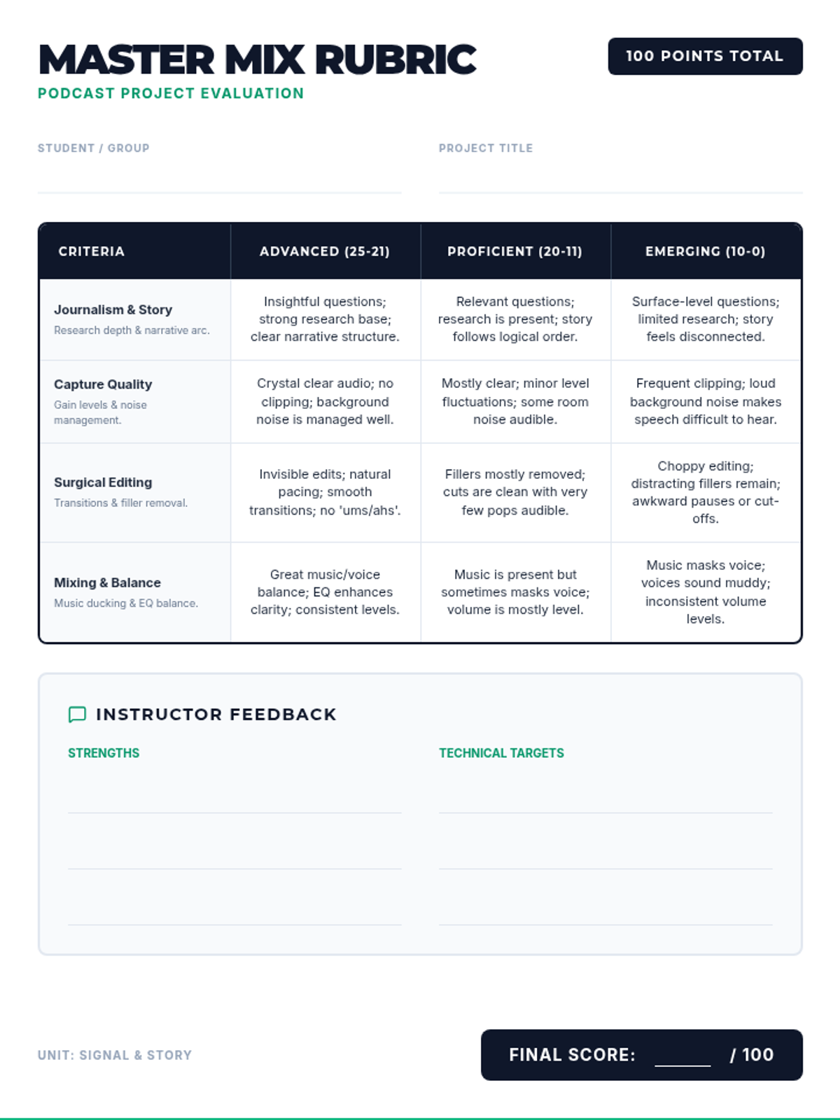 A set of 6 printable vocabulary cards for the 'Deep Sea Signals' lesson, featuring key terms like vibrate, matter, and sound wave with definitions and examples.