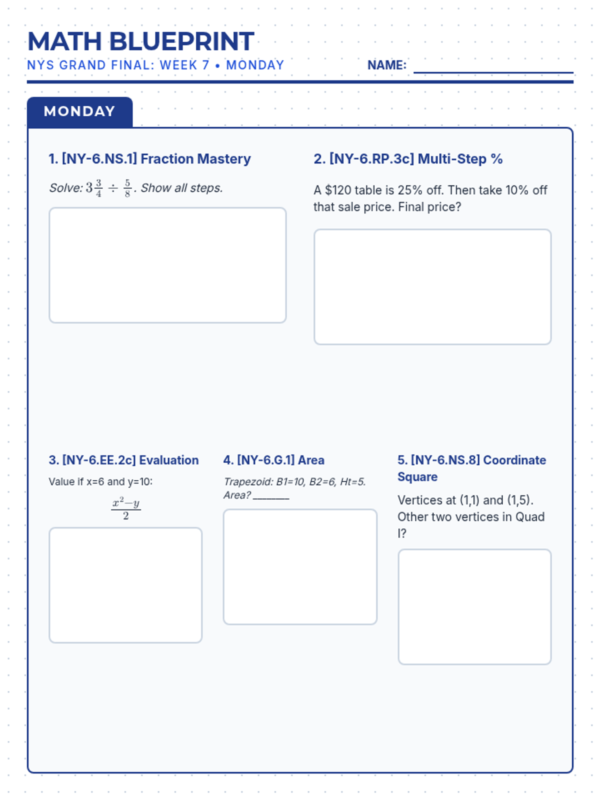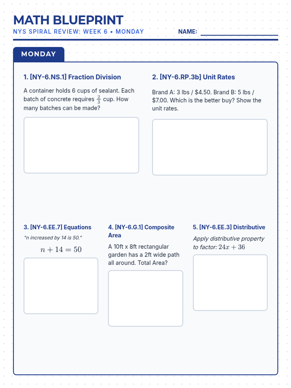 Tier 2 worksheet for learning area of irregular rectilinear shapes, featuring solid shapes and helpful grid lines to assist with decomposition strategy.