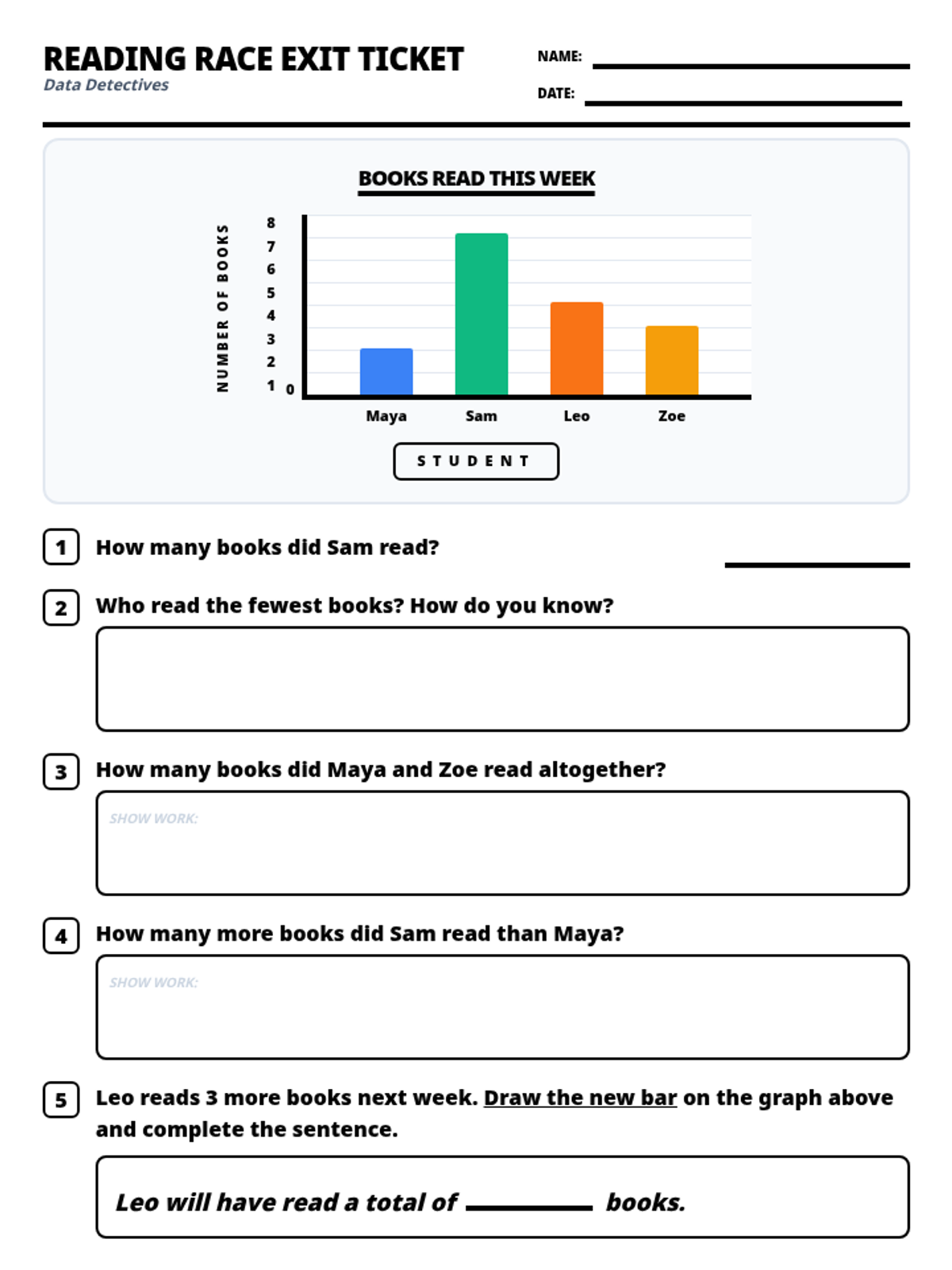 The final assessment for the unit, testing 5-minute intervals, AM/PM logic, and the 'almost hour' trap in a comprehensive format. All clocks updated with full sets of numbers (1-12) for student accuracy. Graduation challenge improved for printability and visibility. fit on one page. Hand logic and proportions fixed.