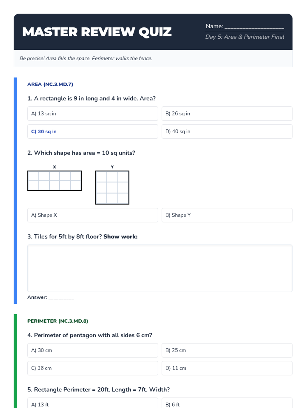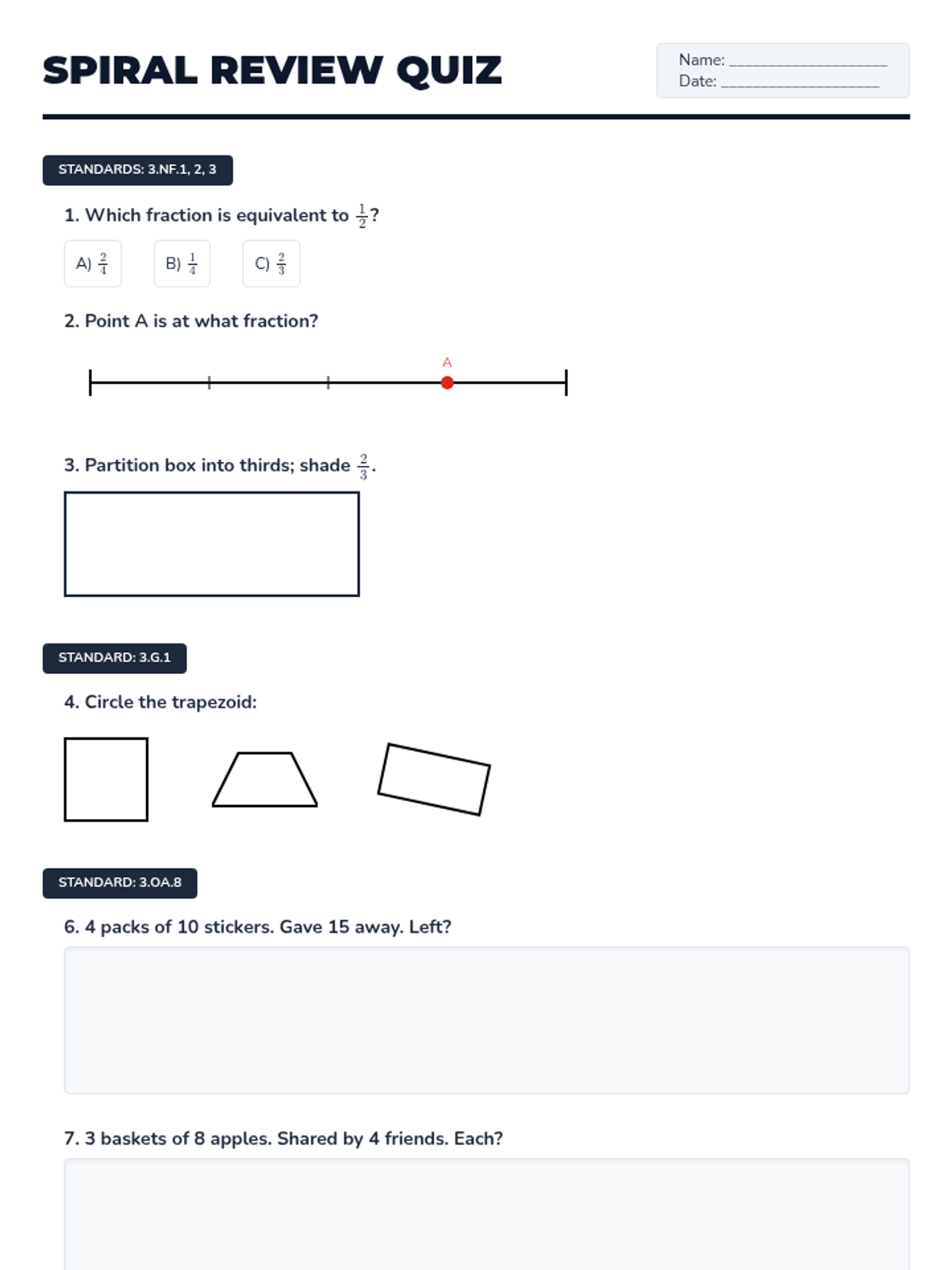 Instructional slides for Day 5 introduction to 3.NF.3 (Fractions on a number line). Covers partitioning, counting equal lengths, and locating points between 0 and 1. Revised with robust percentage-based number line diagrams using Flexbox for accurate partitioning, fixed "hop" visual alignment, corrected 5/8 positioning, and added high-contrast labels and visuals for the Mission Check segment.