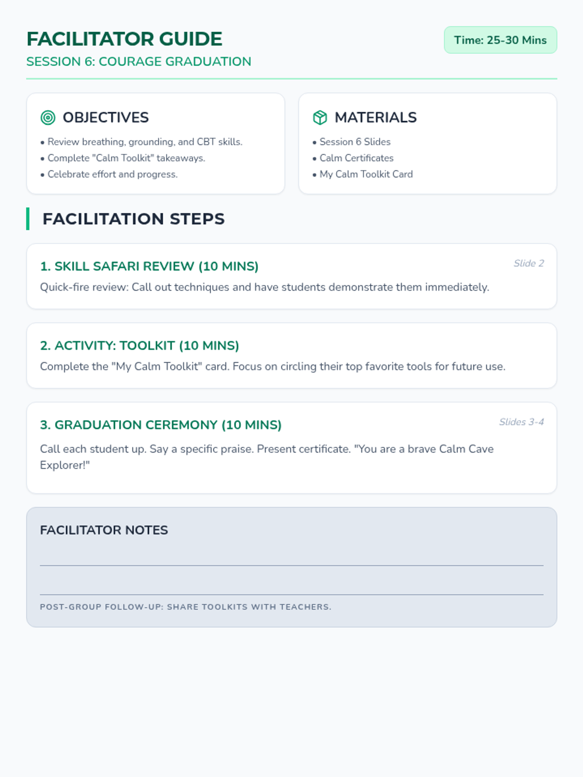 Facilitator guide for the final session. Fixes: Resolved page break splitting Step 3 and added a notes section to fill the page effectively.