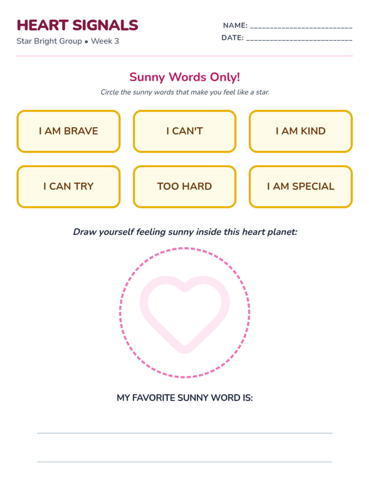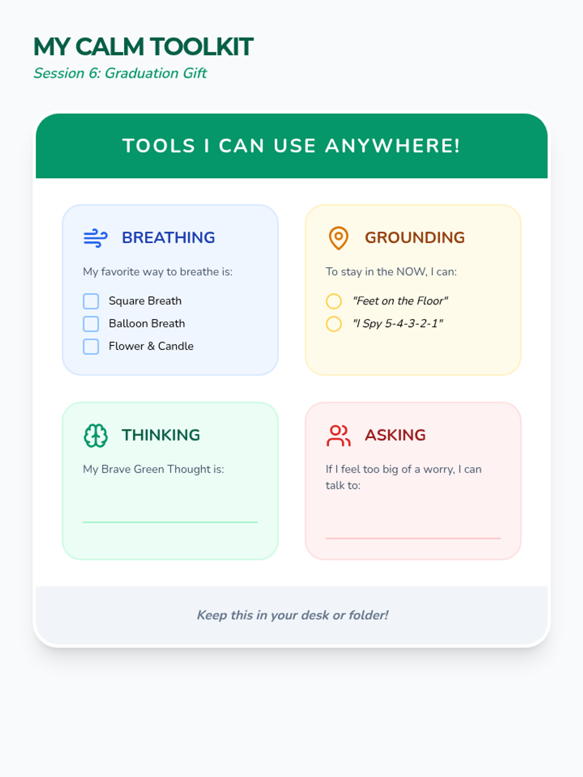 A summary card for students to take away, listing their favorite tools and strategies for managing anxiety.