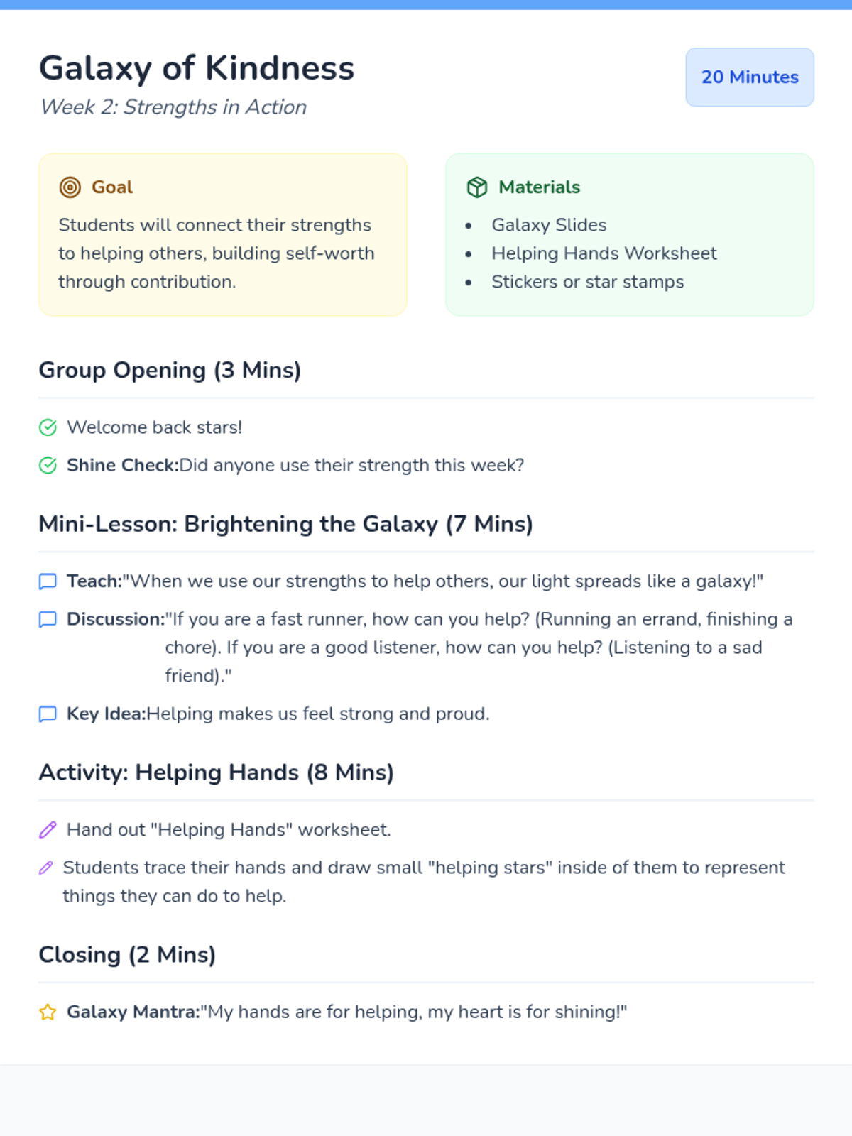 A comprehensive lesson plan for K-2 teachers focusing on mindfulness through nature-based imagery, sensory grounding, and breathing exercises.
