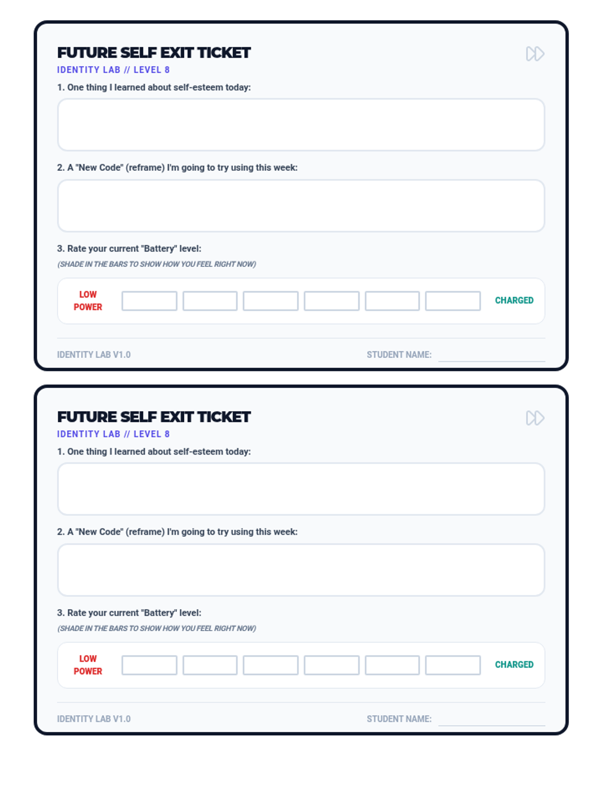 A quick, reflective exit ticket for students to commit to a positive self-talk habit and check in on their emotional state after the lesson.