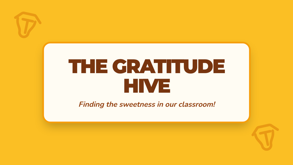 An engaging slide deck for 'The Gratitude Hive' lesson, using the metaphor of bees and nectar to teach first graders about the power of noticing kindness and building community.