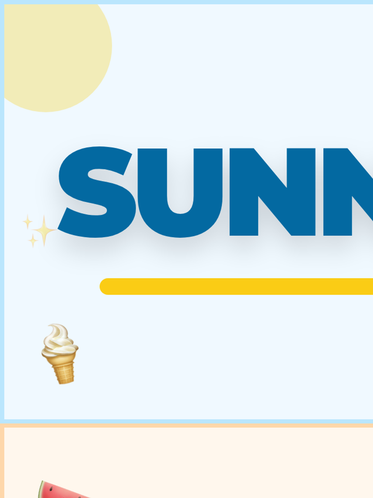 A large, two-page printable banner for the bulletin board header featuring vibrant colors and summer icons.