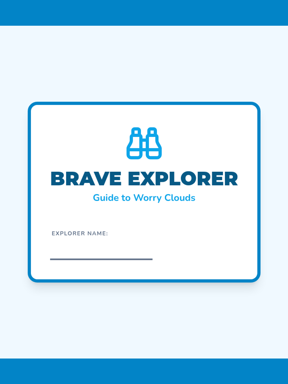 A 5-page student workbook for 1st graders featuring a 6-scenario worry-sorting activity, a drawing area for externalizing worries, a personal "Worry Plan" builder, and a visual 5-4-3-2-1 grounding guide.
