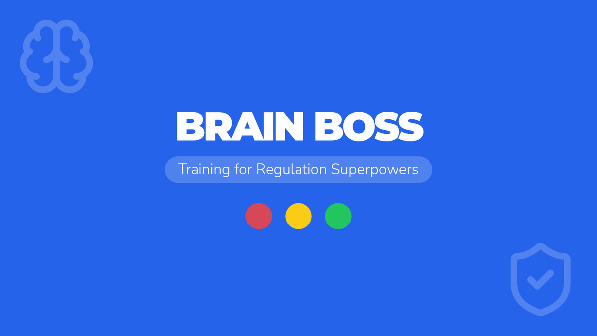 An engaging slide presentation introducing self-regulation as being the 'Brain Boss', featuring interactive scenario analysis and the 'Stop and Think' technique.