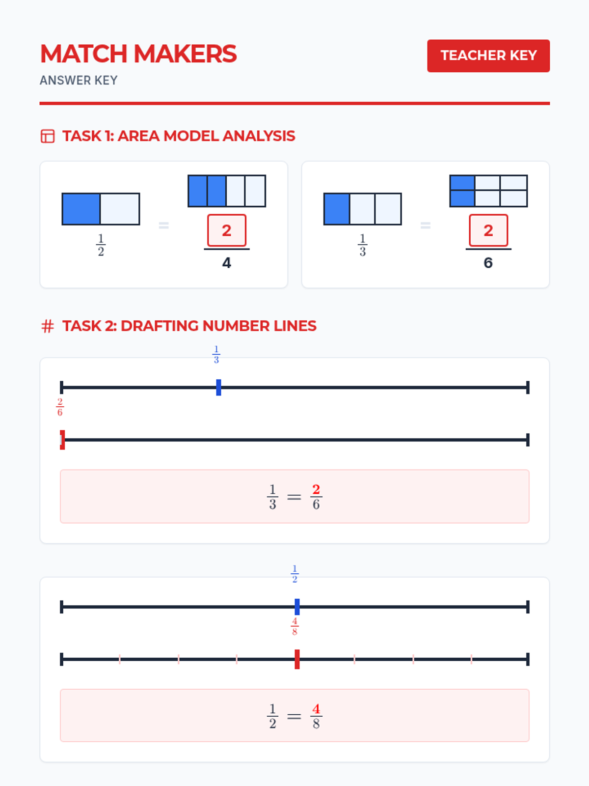 An answer key for the Match Makers Homework, providing correct solutions and visual markings for teachers. Revised to fix overlapping labels and layout issues.