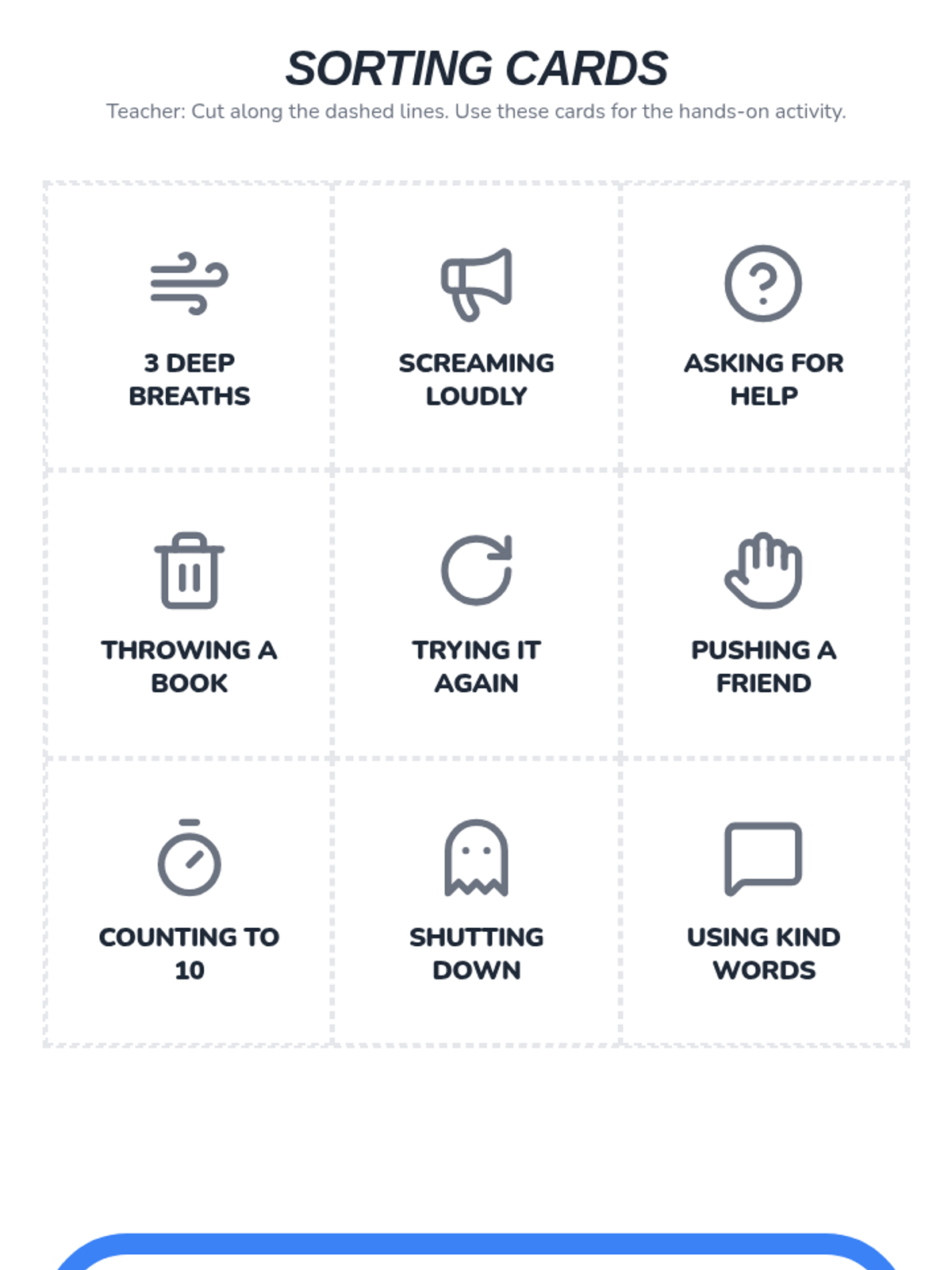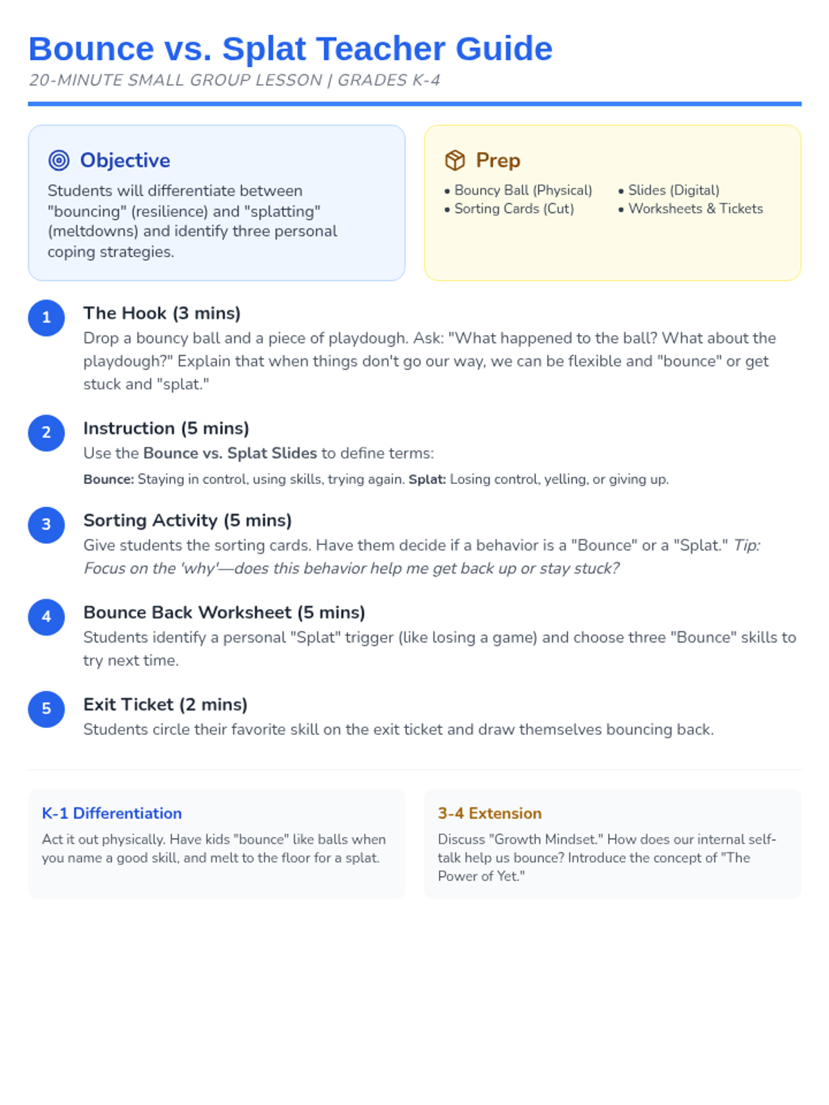 A revised teacher guide for the 'Reaction Rangers' lesson, including updated pacing for scenario practice, improved page-break handling, and specific facilitation tips. Reflects added scenarios for peer conflict and academic mistakes. Optimized for a single-page view.
