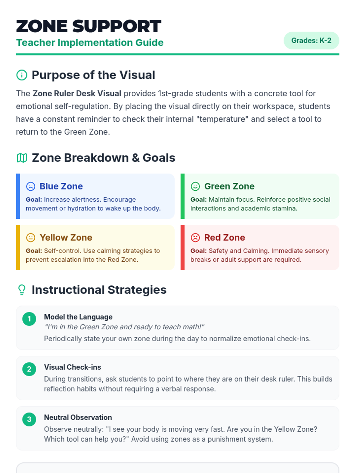 A revised teacher guide for implementing the Zone Ruler Desk Visual. Includes fixed page breaks and clearer assembly instructions that link specifically to the thermometer-style visual.