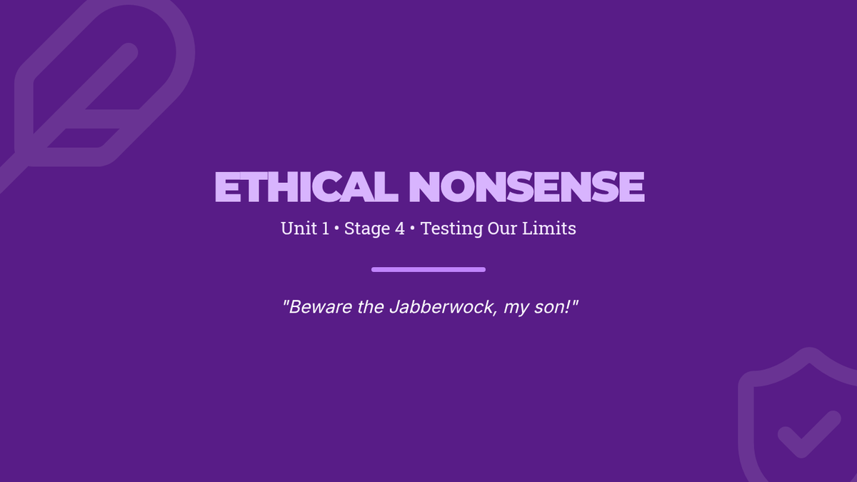 A slide deck for Week 4 focusing on ethical choices in 'Good Samaritan' and linguistic play in 'Jabberwocky'.