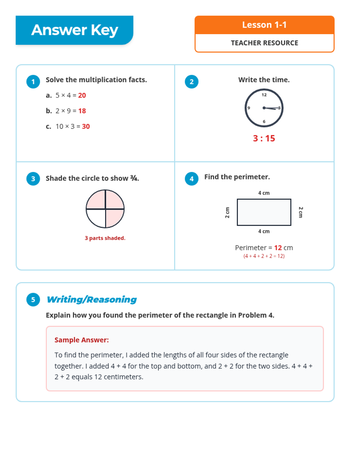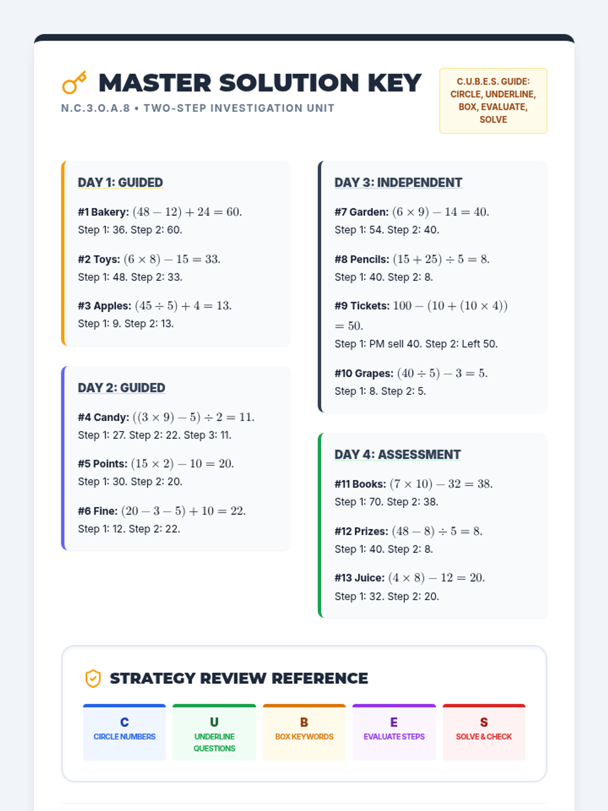 The answer key for the Nugget Comparison Worksheet, showing the visual decomposition of base-ten blocks and the finalized subtraction sentence.