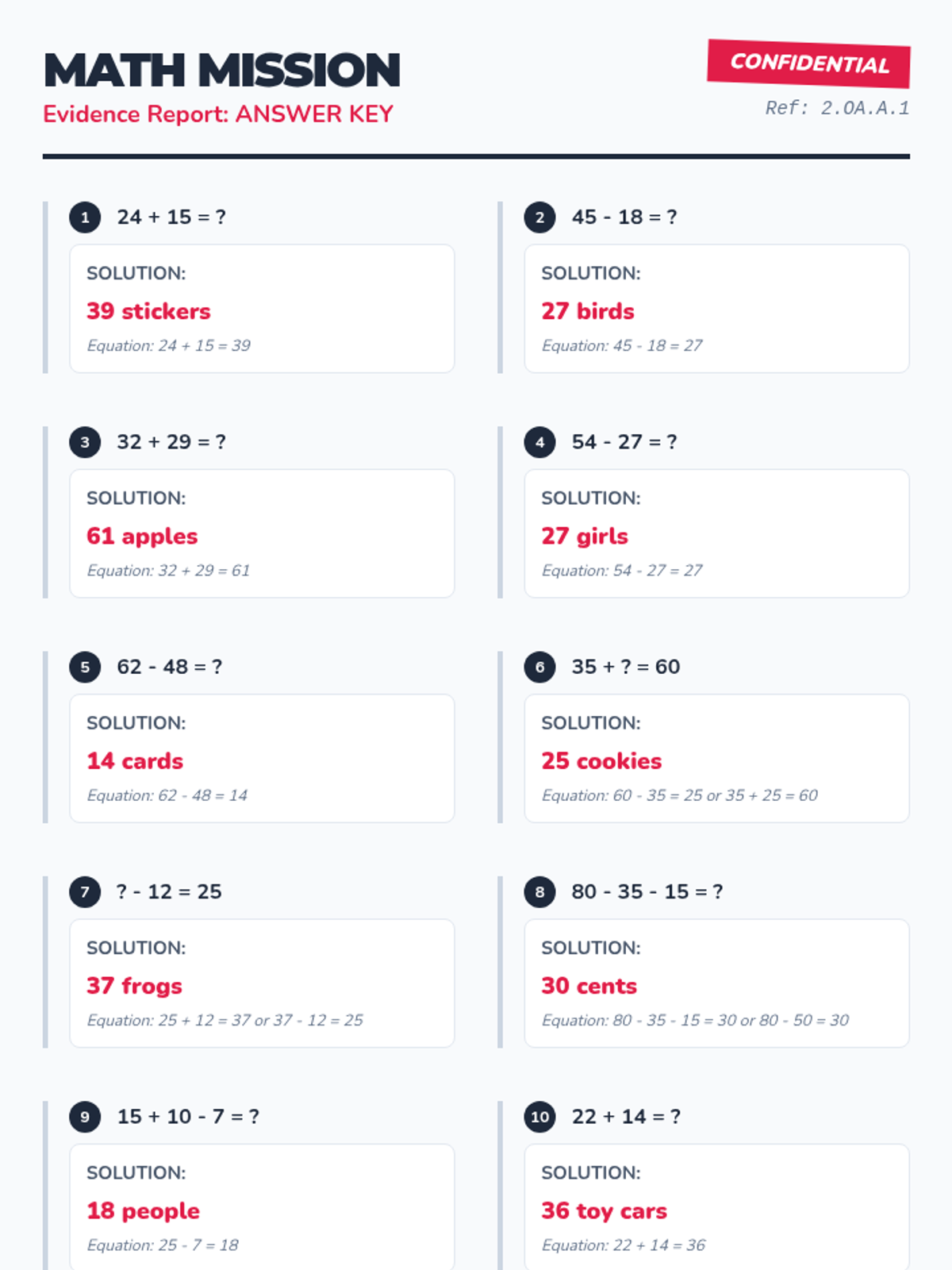 Updated teacher answer key including solutions for the Butterfly Battle Word Problems along with all other lesson materials.